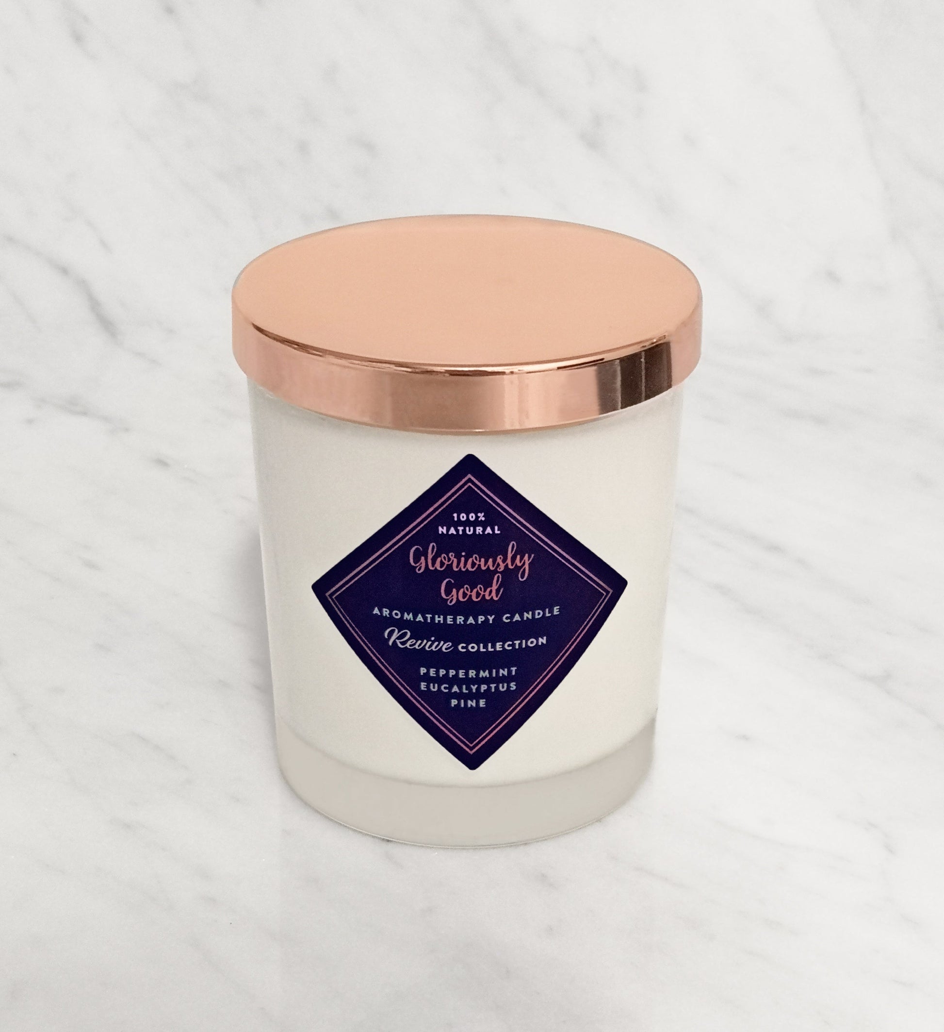 - Aromatherapy Candle: soy wax, organic Peppermint essential oil, organic Eucalyptus essential oil, Pine essential oil.