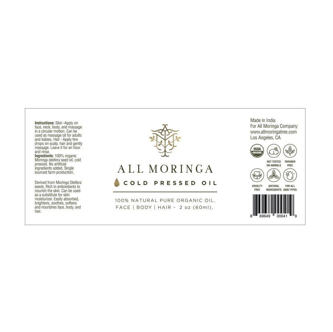 - The Moringa trees in which this Moringa Oleifera cold pressed seed oil is made are grown at an organic farm where all cultivation processes are ethically and naturally controlled, this process helps us package and ship our Moringa creams under stringent guidelines.