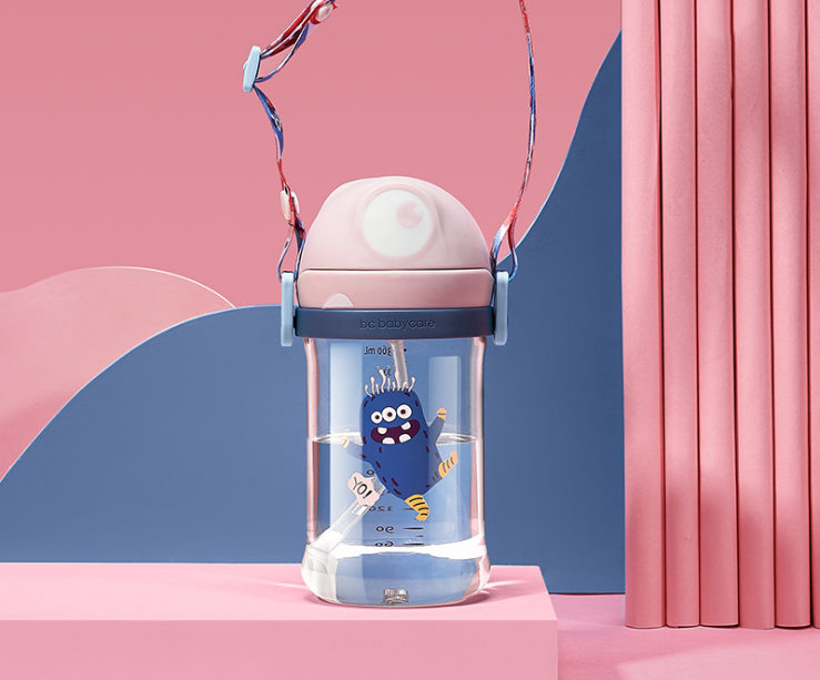 Color: Pink, Size: 360ml - Babycare 240ml Baby Sippy Cup Cute Shape Anti-Choke Straw Baby Water Bottle