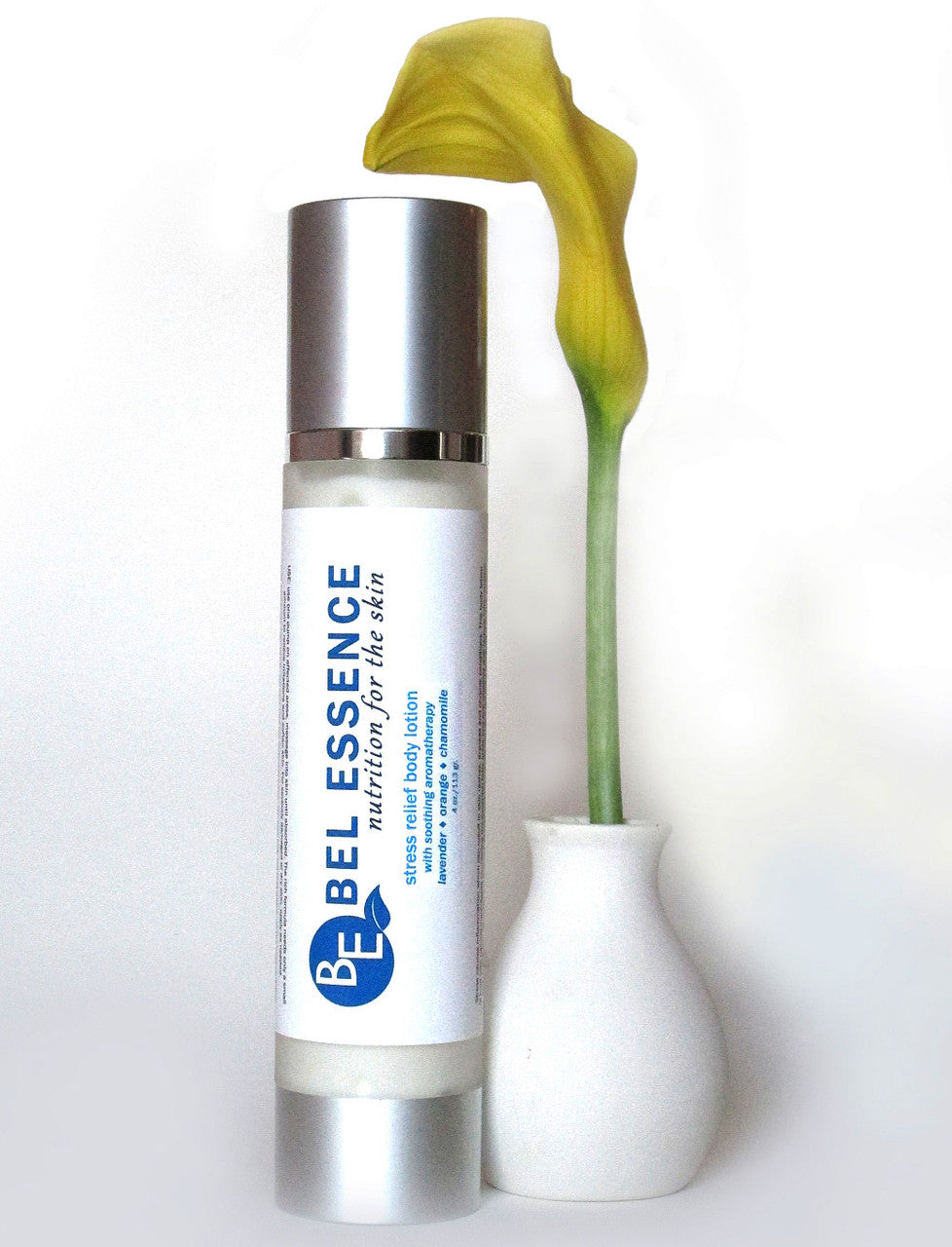 Stress can wreak havoc on our bodies. Stress causes inflammation, and inflammation in turn causes a broad list of physical ailments. For our skin, stress can result in rashes, dry and flaky skin, irritations, and some chronic conditions. The Bel Essence Stress Relief Lotion is formulated with natural oils high in omega-3 and omega-9 fatty acids and other compounds which help reduce inflammation. Lavender, orange and chamomile essential oils calm the mind and mood and help sleep. Bel Essence combines these oils for a gentle, soothing scent that can help reduce your stress level.