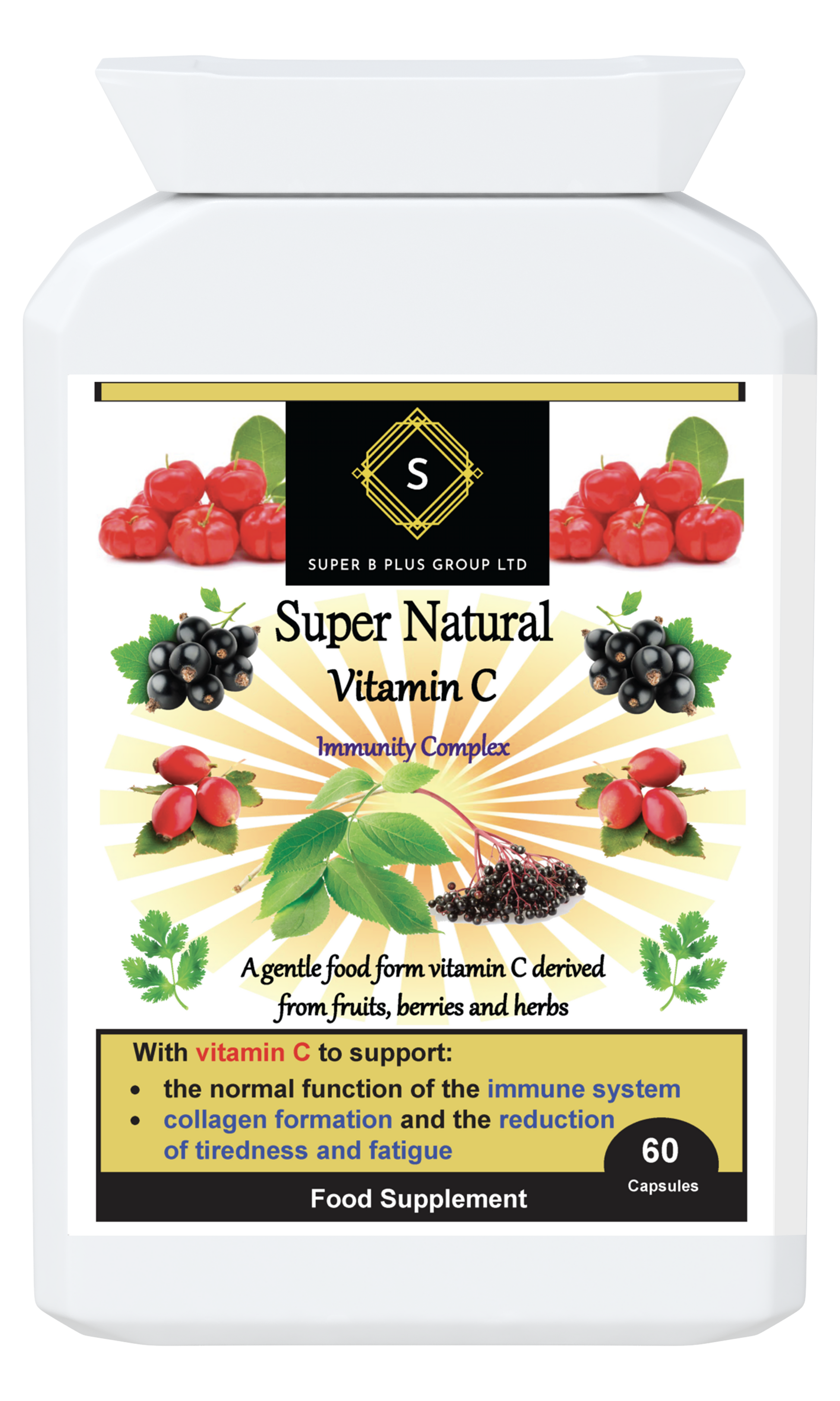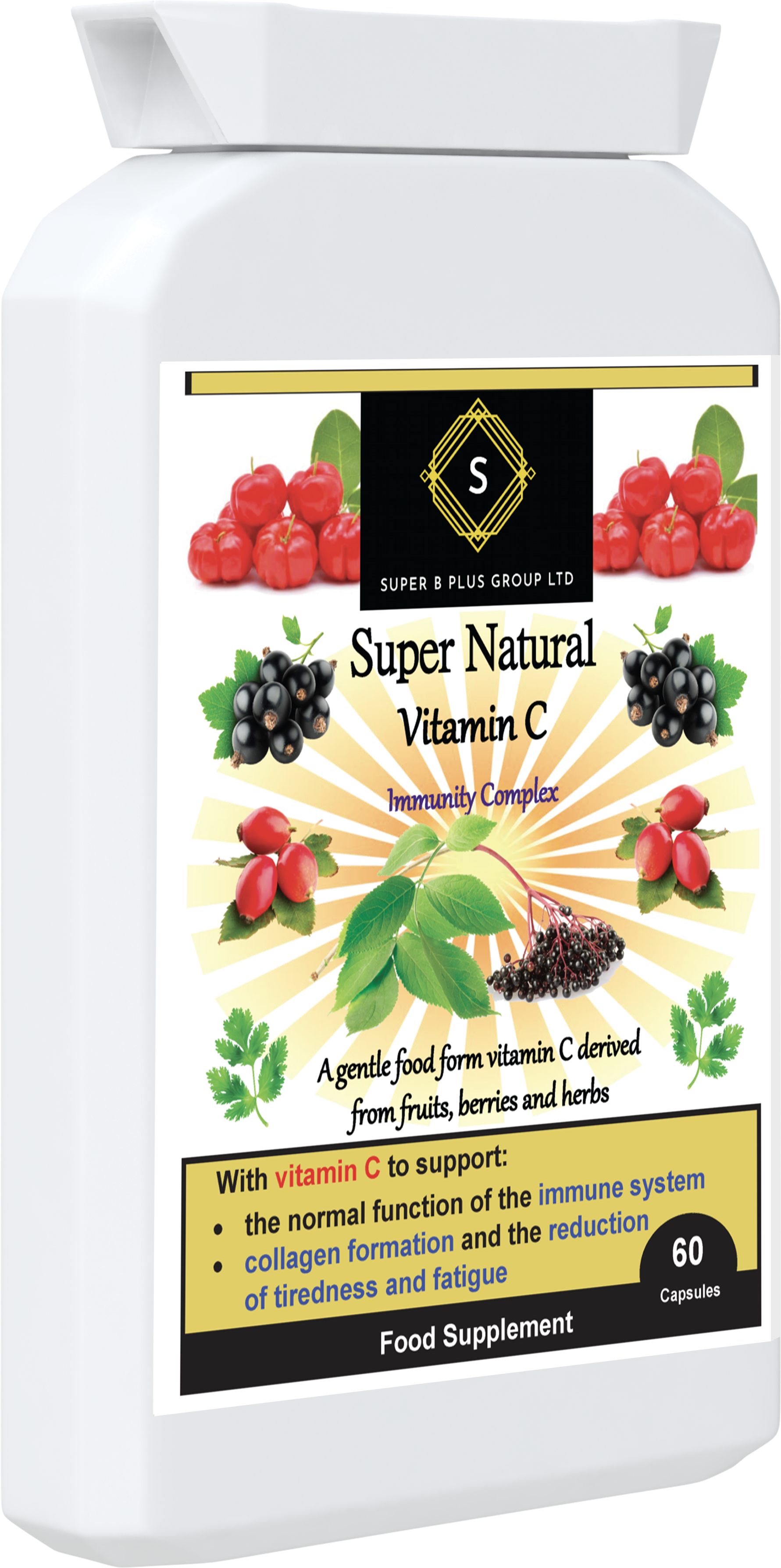 Unlike other Vitamin C supplements, our Super Natural Vitamin C supplement also contains Acerola cherry, rosehip, blackcurrant, parsley leaf and elderberry.